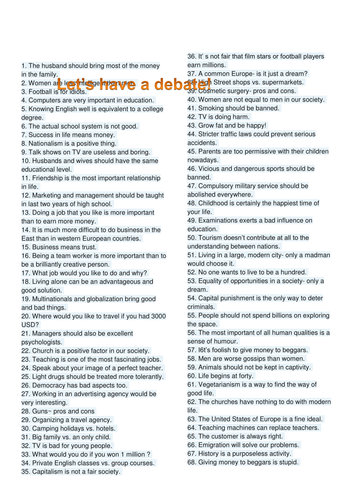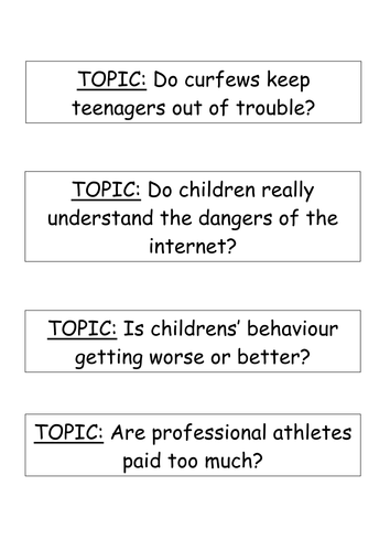 If you teach college or university students, consider some of these debating topics debate. Debate topics with stimulus sheets.